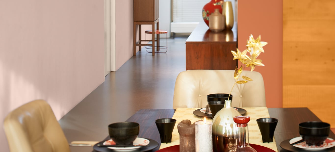 Or opt for deeper blues and greens like Neptune Seas and Rich Teal for a cosier cocoon. Wrapping these colours around your room won’t make your space feel smaller. In fact, you’ll find that darker colours add depth, and with that, comes warmth. With these as a base, it’s then simple to build your palette by adding in oranges and browns through carefully curated accessories.