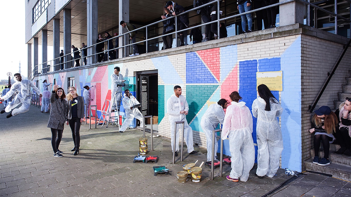Officially launched in Rotterdam, the first Let’s Colour Wall of Connection was painted at the city’s Albeda College, which is celebrating 25 years of being a local hub for diversity. The college invited its students and local communities to paint a wall projecting their dreams of “a more inclusive and embracing future for all”.